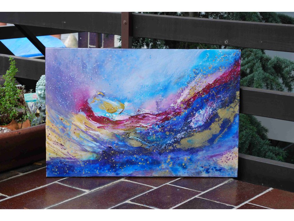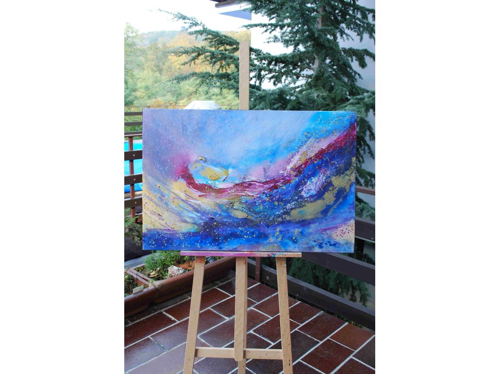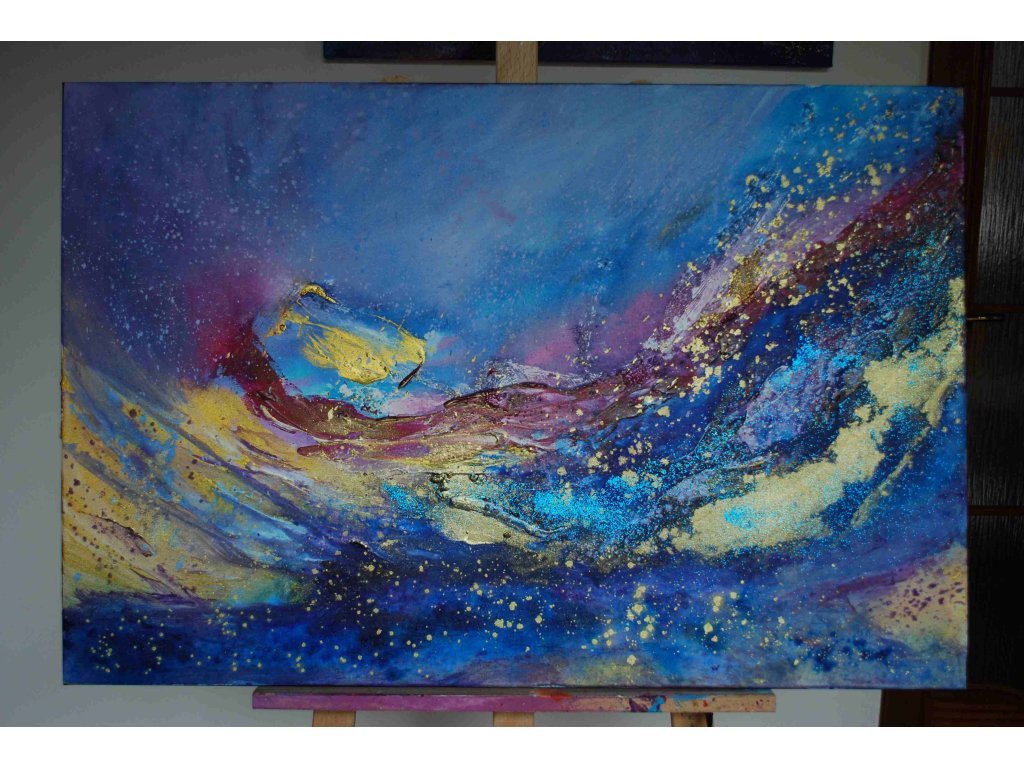 technika a barvy: | akrylová barva, kombinovaná technika, inkoust, prach zlatý |